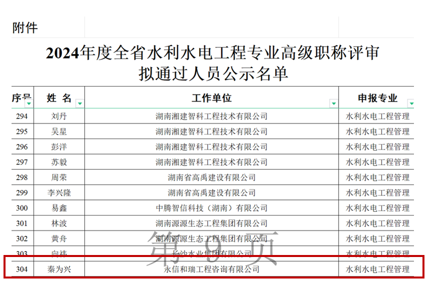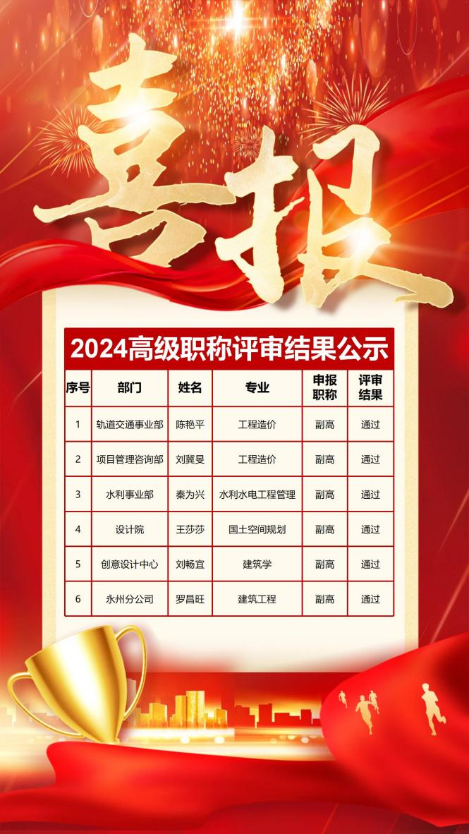 12月24日,湖南省住房和城鄉(xiāng)建設(shè)廳發(fā)布2024年度土建工程專業(yè)高級職稱評審結(jié)果,我司陳艷平、劉冀旻、秦為興、王莎莎、劉暢宜及羅昌旺等6位同事通過職稱評審,成功晉升副高。