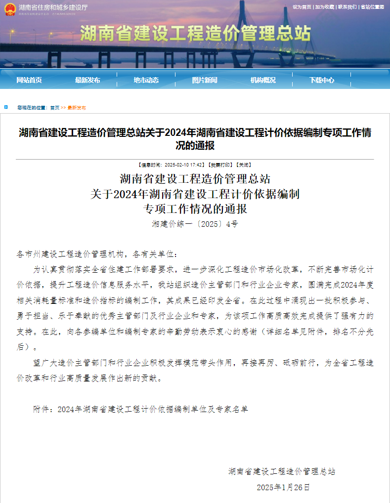 在湖南省2024年度相關消耗量標準和造價指標編制工作中,我司陳鳳、賀偉洲、劉支農(nóng)、陳艷平四位同事表現(xiàn)優(yōu)異,憑借深厚的專業(yè)實力為優(yōu)化省內(nèi)建設工程造價計價管理依據(jù)、營造良好的工程造價行業(yè)發(fā)展環(huán)境做出重要貢獻,獲得造價總站高度贊譽。