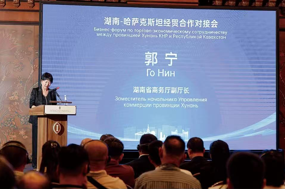 ▲郭寧副廳長在致辭中介紹,湖南區(qū)位優(yōu)越、產(chǎn)業(yè)基礎(chǔ)扎實。她強調(diào),哈薩克斯坦是湖南對外開放合作重點區(qū)域,2024年湘哈進出口額達7.5億美元,同比增長36.2%。(圖片轉(zhuǎn)載自公眾號@湖南省對外經(jīng)濟合作企業(yè)協(xié)會)